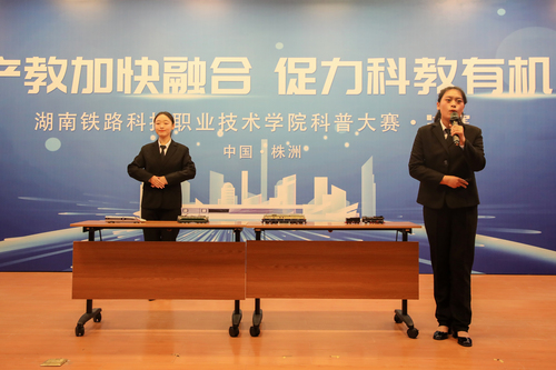 此次比赛以“促推产教加快融合,促力科教有机融汇”为主题,旨在提升全校师生的科学文化素质,普及科学知识,促进科技创新和科学普及融合发展。预赛环节,44名参赛选手各自提交一段4-5分钟的科普视频,大家或实地讲解,或借助PPT等多媒体手段,生动形象地解读了轨道交通发展历程、前沿科技等。