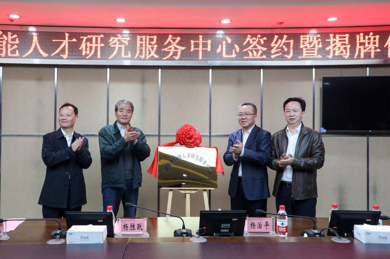 11月19日,湖南省技能人才研究服务中心在金沙检测线路js69落户。株洲市人民政府副市长杨胜跃,湖南省人才研究会会长、湖南省科技厅原常务副厅长杨治平,金沙检测线路js69党委书记刘剑飞,党委副书记、校长戴联华出席签约暨揭牌仪式。